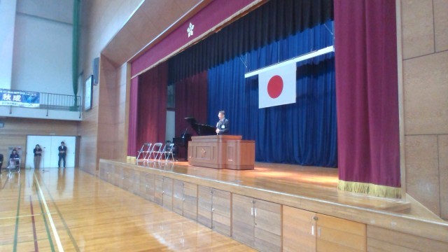 終業式の中で校長先生からは、大沢野中学校が目指している素敵な学校の理想像についてのお話があり、沢中ストリートピアノが設置された願いや意図が語られました。