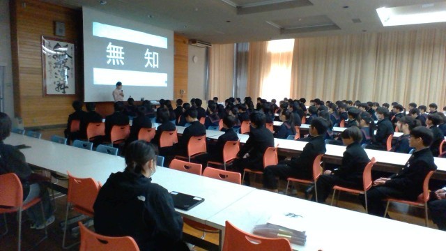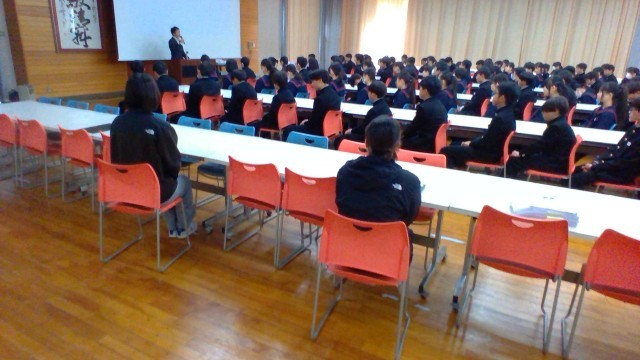 2学年集会のテーマは、「進路学習」です。「視野を広げること」「進路について理解すること」を先生方から説明を受けました。もうすぐ15歳です。大人になっていくための大切な時期です。教室では「進路のしおり」が配布されました。