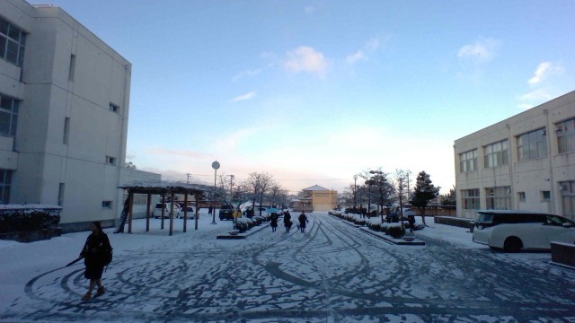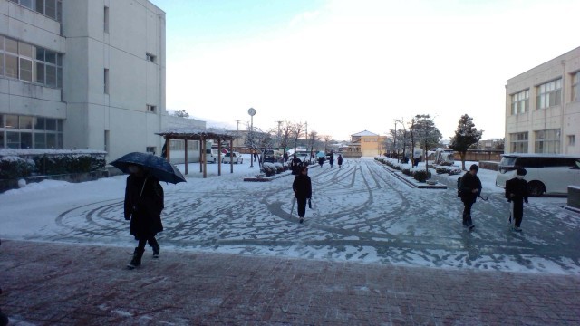 今日は、とても冷え込んでいます。生徒玄関にはうっすらと雪です。寒さで気持ちも引き締まります。