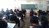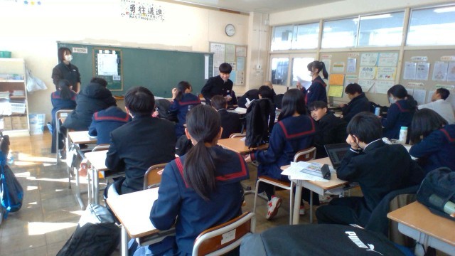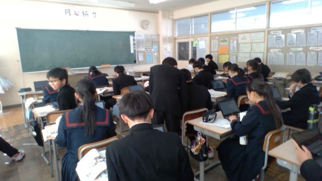 2年学級活動の時間です。代議員会の報告をしたり、進路学習の調べ学習をしたりしています。