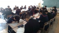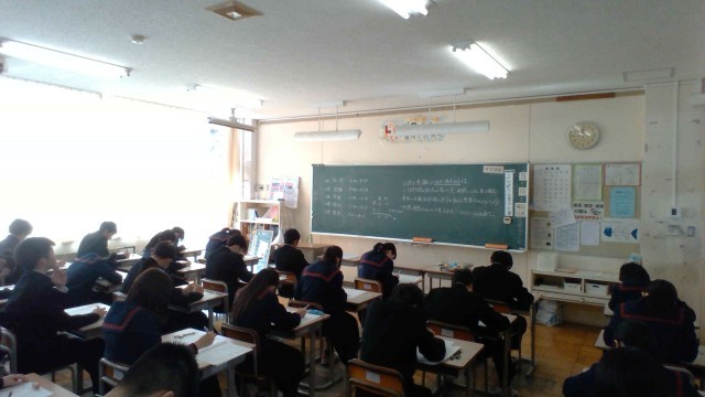 2学年は、実力確認テストを実施しています。本日は、私立高等学校の一般入試の日です。1年後をイメージして、5教科のテストを受けています。