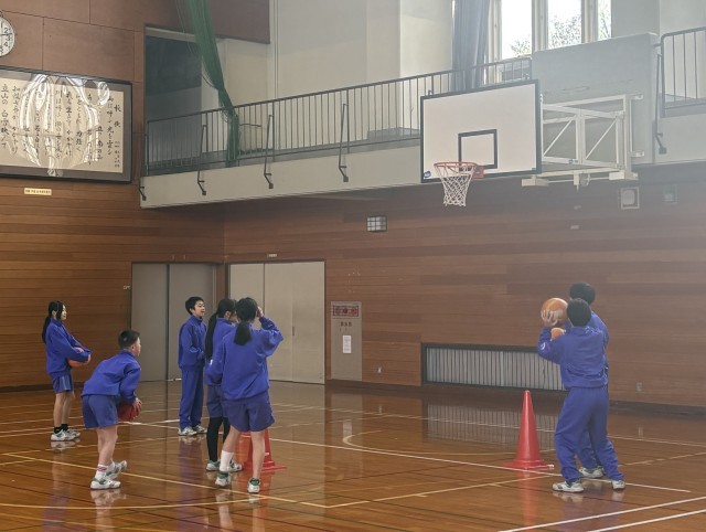 1学年 保健体育 公開日 2026/02/13 更新日 2026/02/13 1年生の活動から 2月13日(金) 1年生の保健体育はバスケットボールを行っています。体育館はとても寒いですが、元気にシュート練習に取り組んでいました。