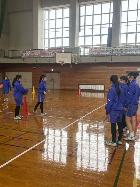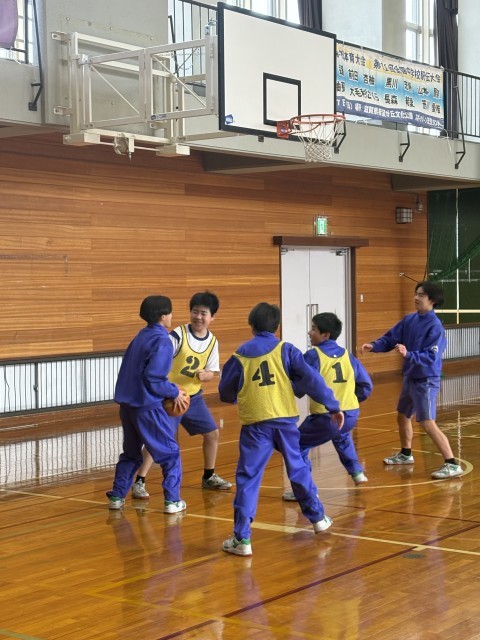 2月27日(金) 保健体育 バスケットボール 公開日 2026/02/27 更新日 2026/02/27 1年生の活動から 体育館にも太陽の光が差し込み、いつもより暖かく、活動しやすい気候になってきました。 今日1年生の体育は、バスケットボールの授業は3対3のゲームを行いました。時間いっぱいまで、積極的にボールを追いかけたり、シュートをしたりしました。