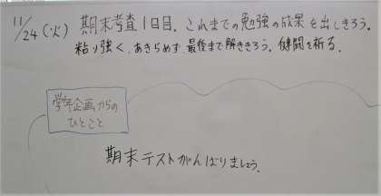 今朝のホワイトボードです。今日はしっかり力を発揮できましたか?