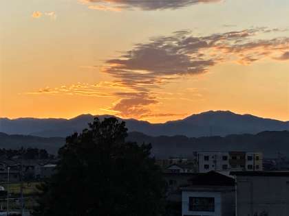 日没の時刻が早くなるとともに、南西側の牛岳のあたりに沈むようになっています。画像は16:35頃の様子です。