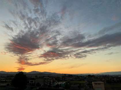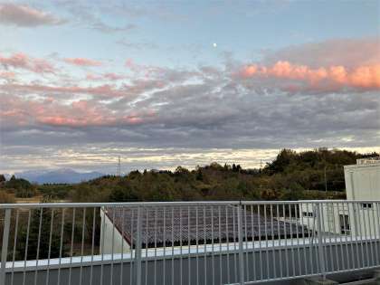 画像下は、夕日に照らされてピンク色になっている雲と、月が見えているところです。なぜこの時間に、この位置に月が見えるのかも、3年生ならわかりますよね?
