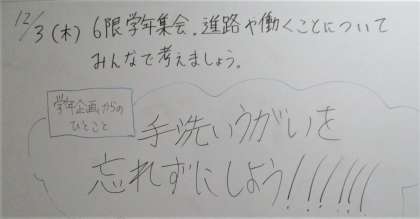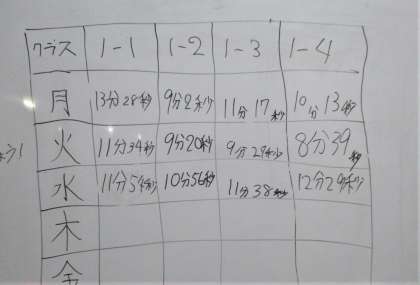 下の画像は、2回目の給食準備時間調査です。12Hが頑張っていますね。