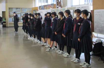 今朝は、24Hの女子が担任の先生と一緒に、寒い中、あいさつ駅伝に参加してくれました。ありがとうございました。