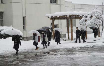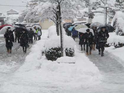 学校周辺は、朝早くから除雪車が稼働し、除雪した状態でしたが、雪が山になっているところもあり、登校しにくい状態でした。