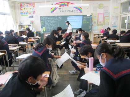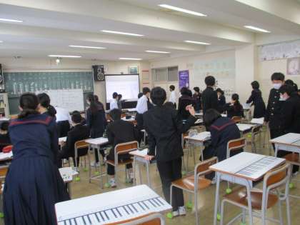 画像上:13H英語 隣同士で対話文の練習をしています。