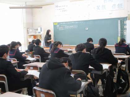 画像上:23H英語 武史のソフトテニスについての発表を読み取ろう。君の発見は何?