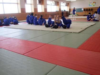 画像上:31H保健体育 マット運動 グループ発表の練習