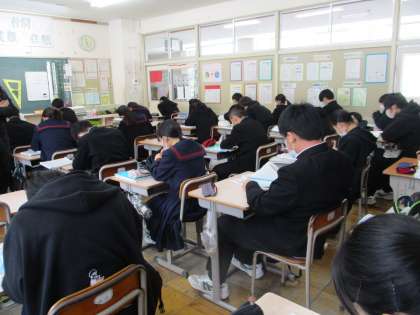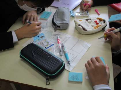 画像上、中:23H美術 和のデザイン「new とやまもようをつくろう」デザインを転写して、彫刻刀で彫っていました