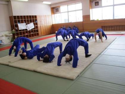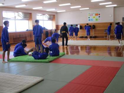 画像中、下:32H保健体育 マット運動 グループ演技の練習