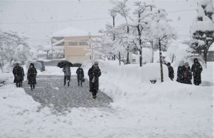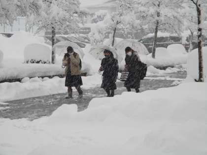 激しく雪が降ったり、時々青空が見えたりする、冬特有の空模様の中、生徒は元気に登校してきてくれました。