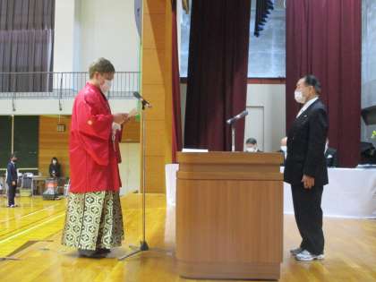 本日(10日)、10:00から本校体育館で大沢野地域成人式が行われ、160名ほどの新成人が出席しました。