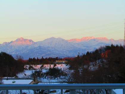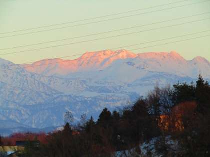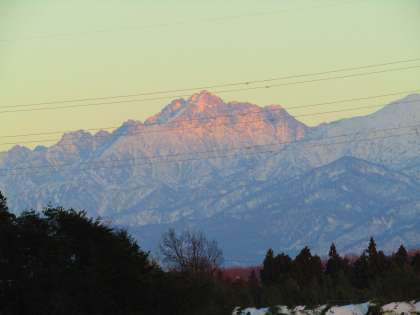 17:00頃に校舎3階から撮影した立山連峰です。カメラの「極彩色」モードの撮影です。実際よりも少し色が強調されていますが、肉眼で見てもとてもきれいでした。