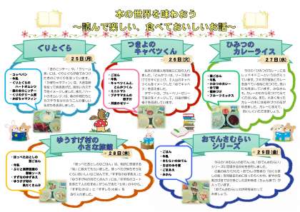 富山市では、今週(25日〜29日)を「学校給食週間」とし、『本の世界を味わおう 〜読んで楽しい、食べておいしいお話〜』をテーマとし、本に登場する料理や食材を取り入れ、その本にちなんだ献立が実施されます。