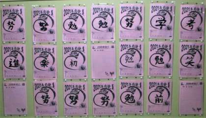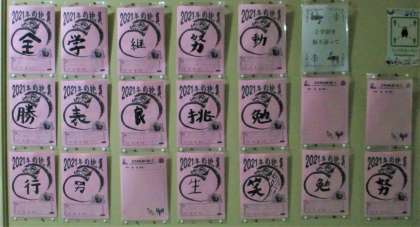 24Hの廊下掲示です。「努」が9名、「勉」が7名と、勉強に努力する意識が高いですね。