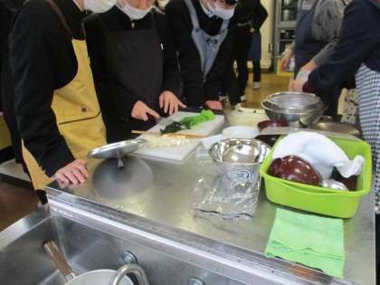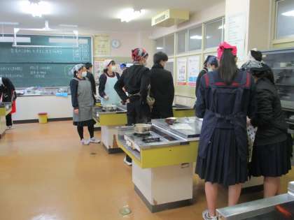 画像は、35Hの家庭科調理実習「青菜のごま和えとすまし汁を作ろう」です。1時間で手際よく作っていました。