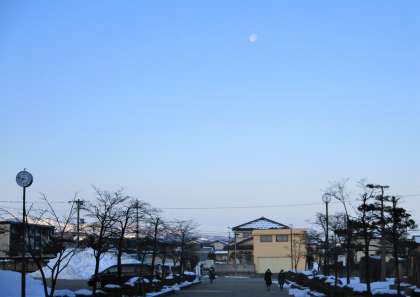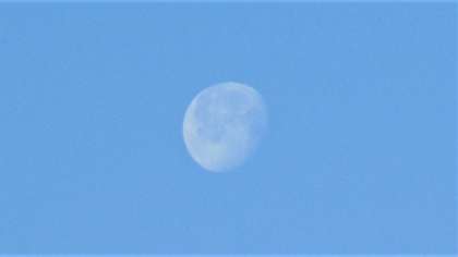 2月最初の朝は、風が強かったですが、晴れて、西の空に月が見える朝となりました。画像は7:47の画像です。