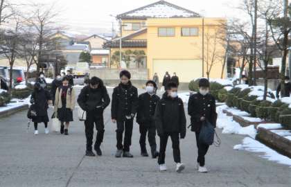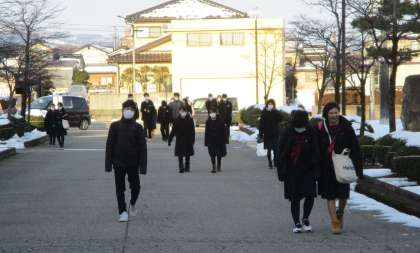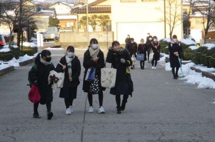 強い風の中、生徒は仲良く元気に登校してきてくれました。