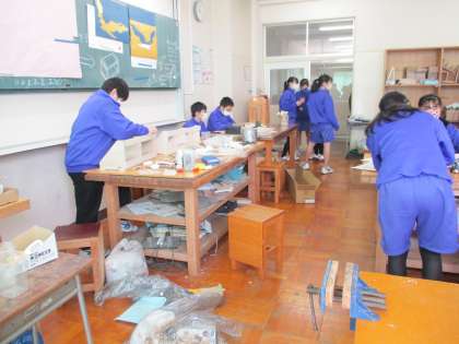 画像中、下:12H技術 木材加工:作品の完成に近づいています