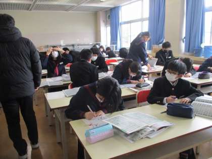 画像上:13H音楽 卒業生に贈る合唱曲の練習をしています