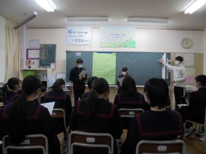 2年生は5,6限に、各クラスで高校調べの発表を行いました。