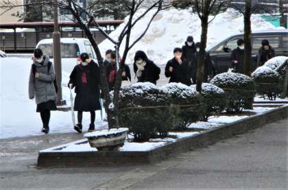今朝の登校時の気温は1度ほどで、少し雲のある状況でした。路面は凍っていなかったので、安心して歩行することができました。