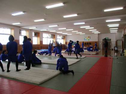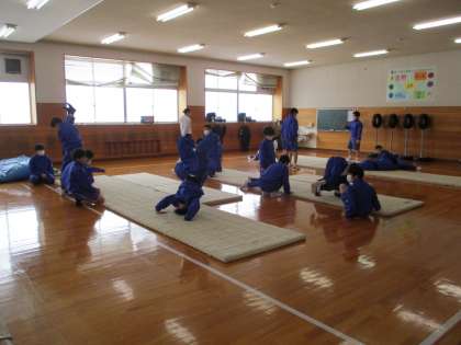 画像上、中:11H保健体育 マット運動 倒立と技のテスト