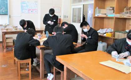 画像は、35Hの金属のペン立て作成の様子と、3年生が制作したペン立てです。