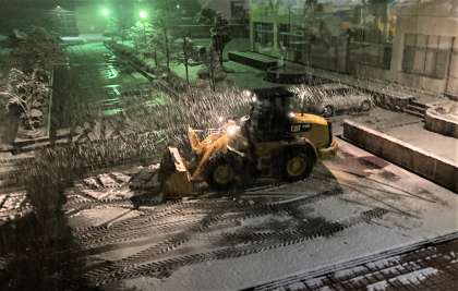 今朝は、早い時間から業者の方による除雪が行われました。朝早くからありがとうございました。また、本校用務員も生徒の登校前から除雪を行いました。