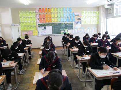 1年生は学年末考査の最終日に、技術・家庭、理科、数学の3教科に取り組みました。