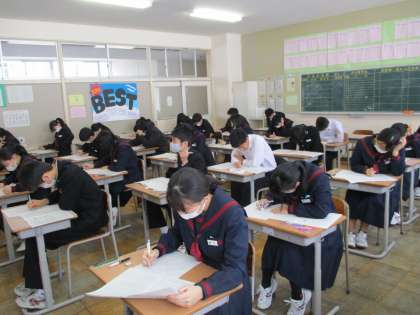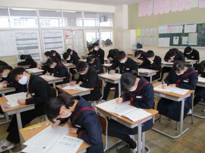3年生は英語と数学に取り組みました。県立高校一般選抜を受検する生徒も、それ以外の生徒も学習内容をしっかりと身に付けておいて下さい。