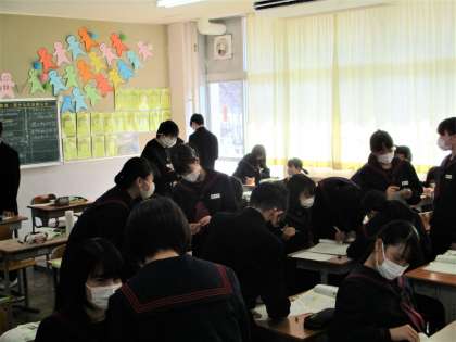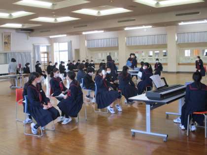 画像上:13H音楽 3年生に贈る合唱曲の練習をしています