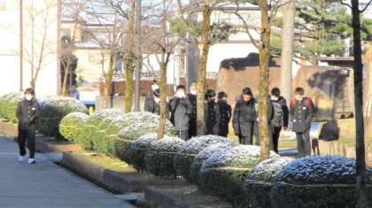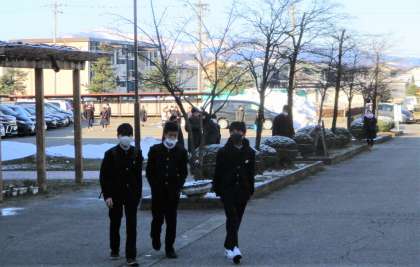 今朝は、氷点下まで気温は下がりましたが、生徒の登校時間にはプラスの気温までに上昇したようです。