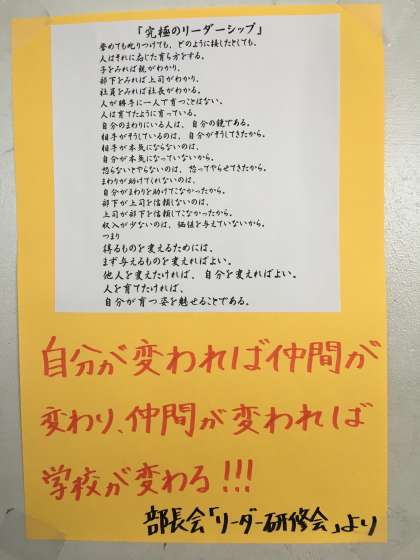 2年生の教室がある2階廊下に、先日のリーダー研修会の内容に関する掲示物がありましたので、ここで紹介します。