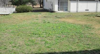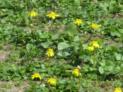 明るく暖かい日差しに、ふと気がつくと中庭に黄色い花が咲いていました。