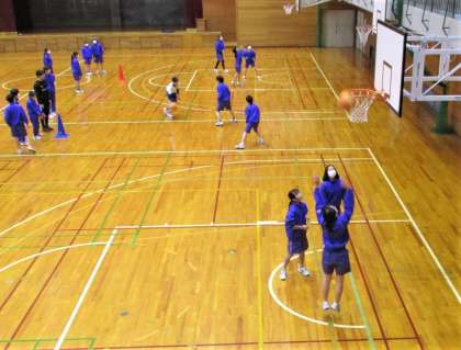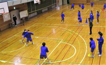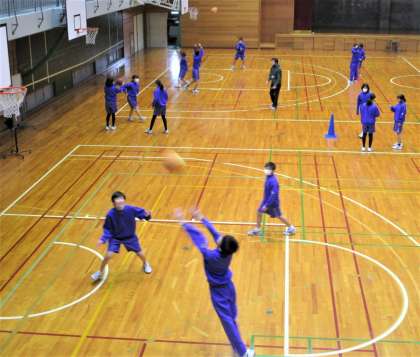 画像は、13H保健体育のバスケットボールの様子です。2対1を連続してやる練習をしていました。とても楽しそうにやっていました。
