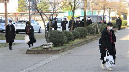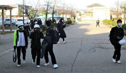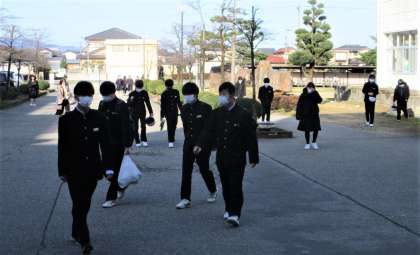 昨日まで県立高校一般選抜を受検していた3年生も登校し、活気ある登校風景になりました。