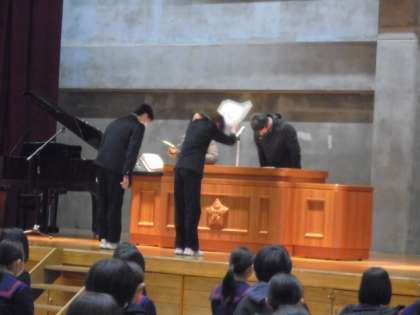 1・2限に3年生が卒業証書授与式の練習を行いました。