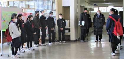 今朝のあいさつ駅伝は23H女子と、3年生の有志が出てくれました。
