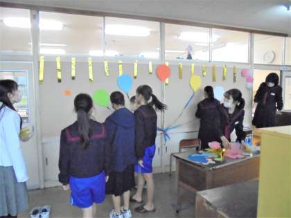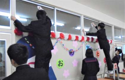 3年教室や教室前廊下の掲示板は、明日に備えて素晴らしい飾り付けになりました。