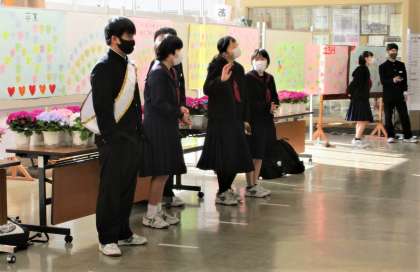 今朝は、剣道部と柔道部が合同であいさつ駅伝に出てくれました。どちらも気合いを入れて声を出す部活動ですから、あいさつも気合いが入っていました。