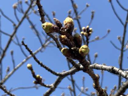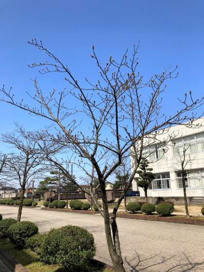 画像は、生徒玄関前の桜の木と膨らんできた蕾(つぼみ)です。いつ咲くでしょうか。