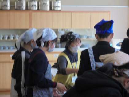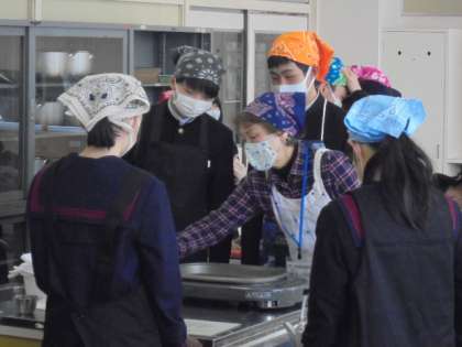 その中で、今年度の取組として家庭科の調理実習の補助をしていただくことになりました。18日(金)と本日の2日間、地域の方2名ずつに来校いただきます。