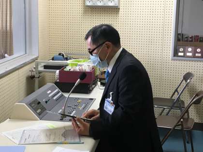 本日の給食時、校内放送で、ALTの先生の離任式を行いました。