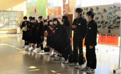 今朝は吹奏楽部が出てくれました。吹奏楽部は3月に3回もあいさつ駅伝にエントリーしてくれました。いつもさわやかなあいさつ、ありがとうございました。来年度もよろしくお願いします。