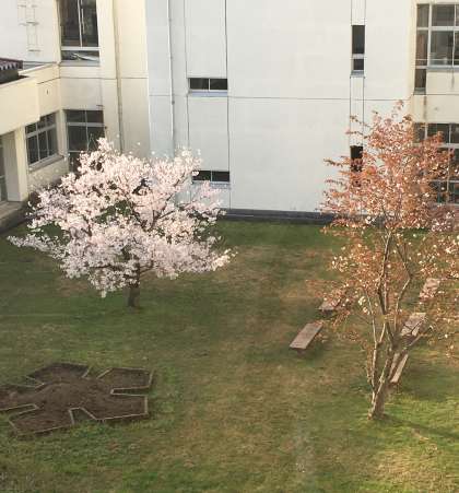 写真上:自然とのふれあいが多い大沢野中学校です。